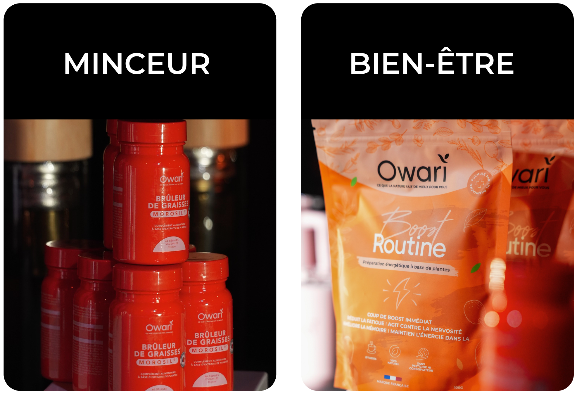 Owari est né pour proposer des formules utiles, lisibles et efficaces, sans compromis sur la qualité ni sur la santé.